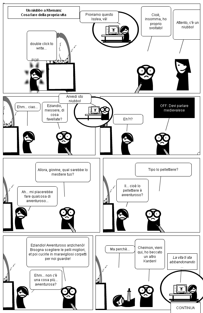 E non è in fondo quel che conta? Isylea assomiglia molto ad una simulazione di vita reale, in un mondo medioevale fantasy. E come nella vita reale, difficilmente raggiungi gli obiettivi che ti eri prefisso: differentemente dalla vita reale, però, in Isy ti possono capitare nel frattempo un sacco di cose fighe.